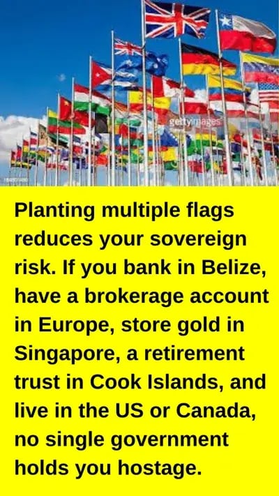 The NEW global diversification and the smart “flag-planting” strategy extend far beyond financial assets. Think of planting a flag for your non-financial assets too. The more flags you plant, the more diversified you are, and the safer you are from sovereign risk.